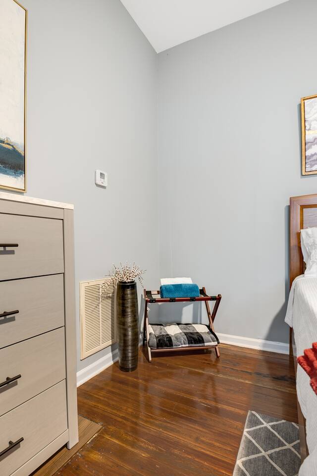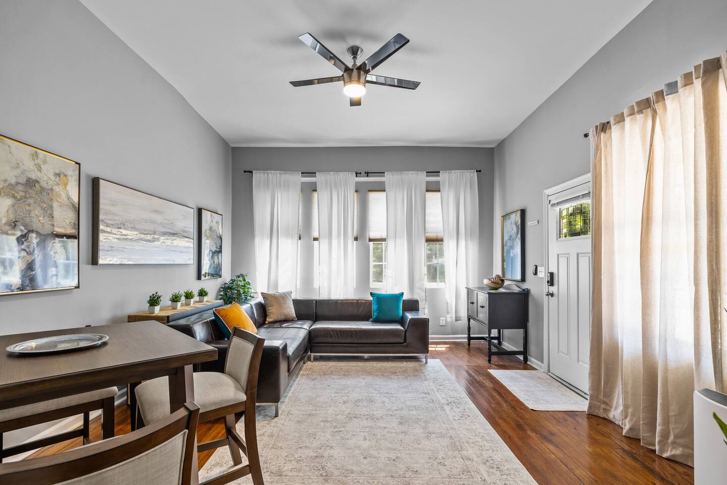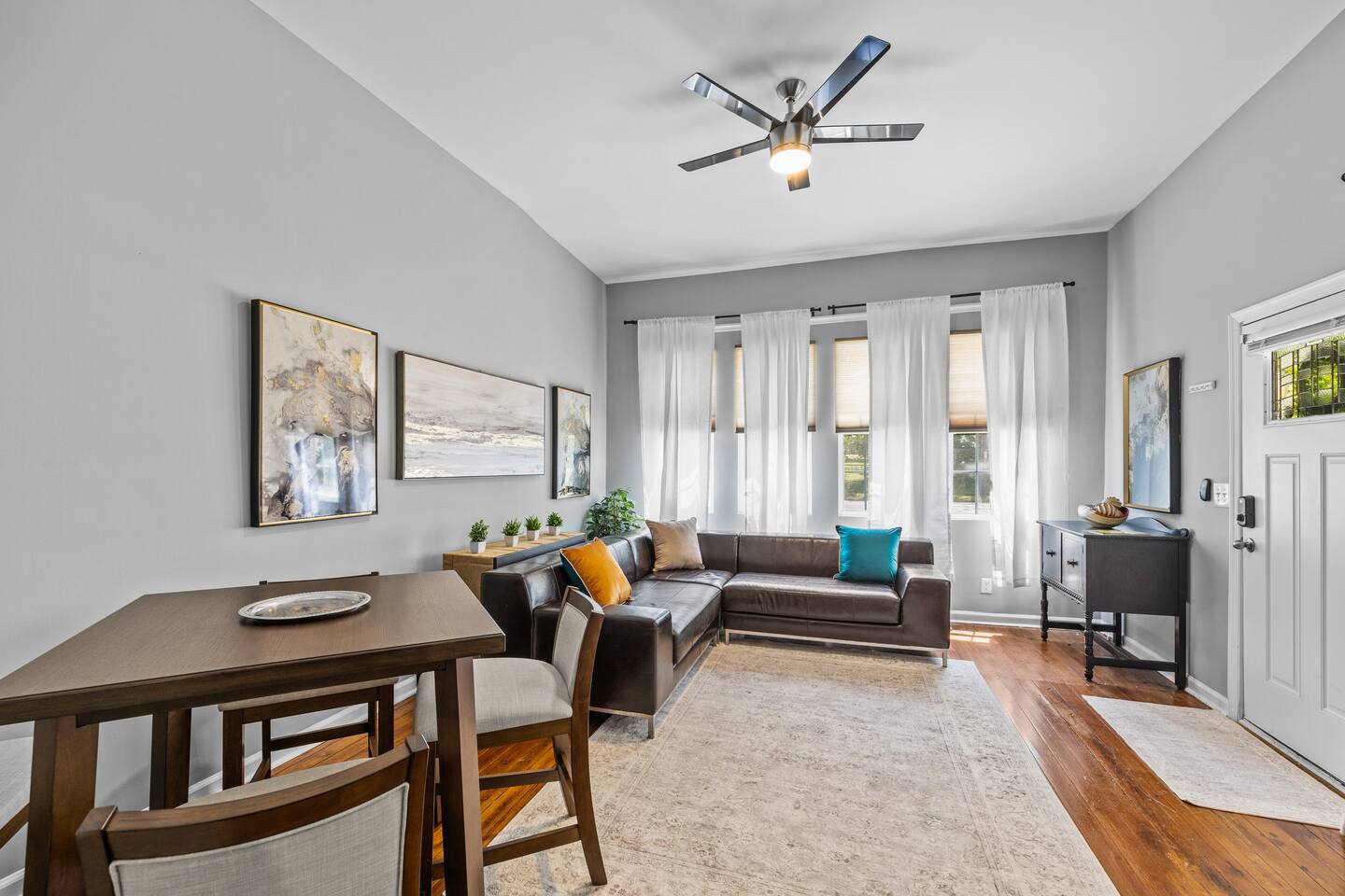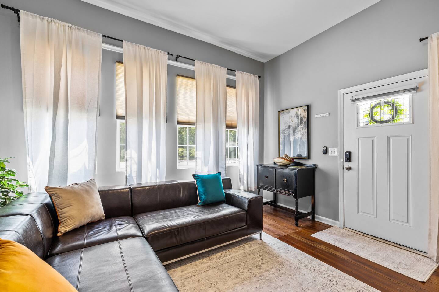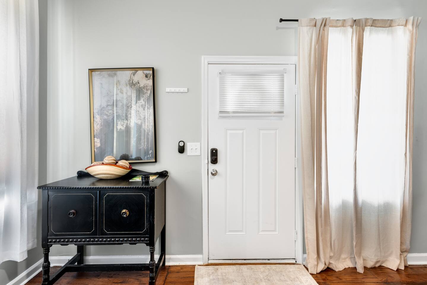 This is an urban, diverse neighborhood. We've always felt safe there, but if you are sensitive to city noise or unaccustomed to city living, this might not be the place for you. Free parking for this apartment is in front of the property. We have outdoor ring cameras located in the front and rear of the property. We have outside cameras which are disclosed in our listing and tampering with these cameras or the internet will result in fines and possible eviction. No immediate local guests allowed! ***You can access the bathroom and kitchen by entering the bedroom.